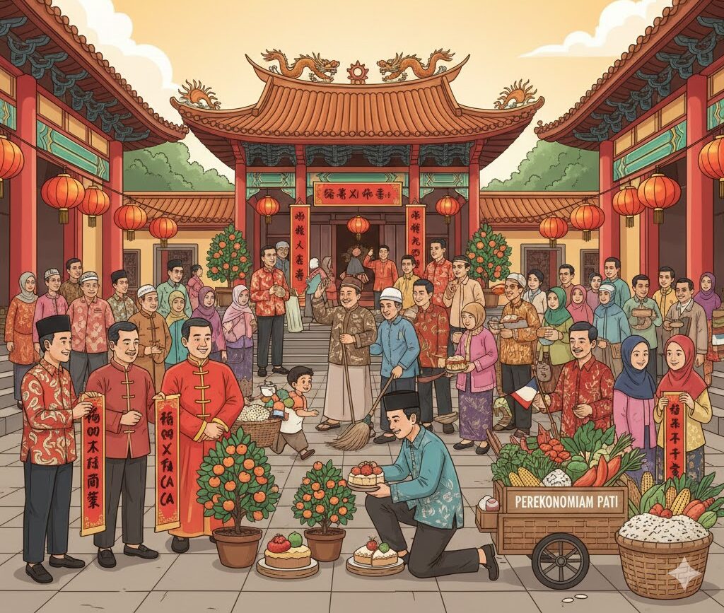 Gotong Royong Lintas Iman di Klenteng Hok Tik Bio, Harmoni Imlek Menggerakkan Ekonomi Pati