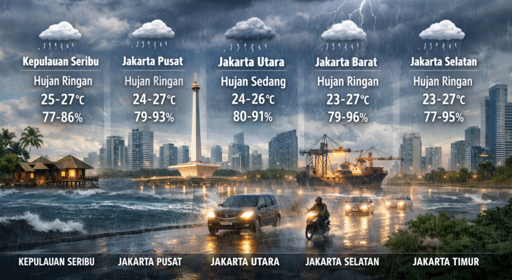 Hujan Diprakirakan Guyur Seluruh Wilayah DKI Jakarta, Warga Diimbau Waspada