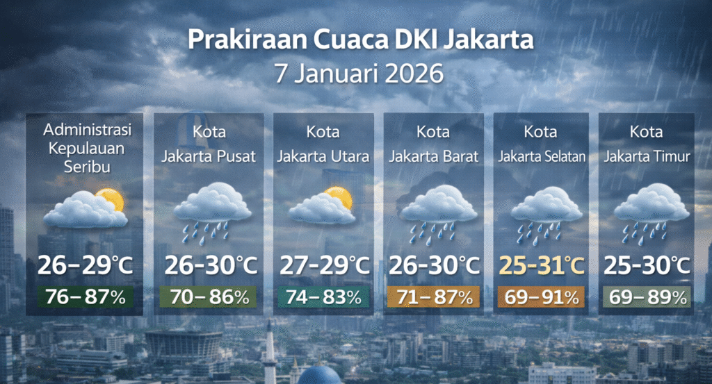 BMKG: Hujan Ringan Berpotensi Guyur Sebagian Wilayah DKI Jakarta Hari Ini