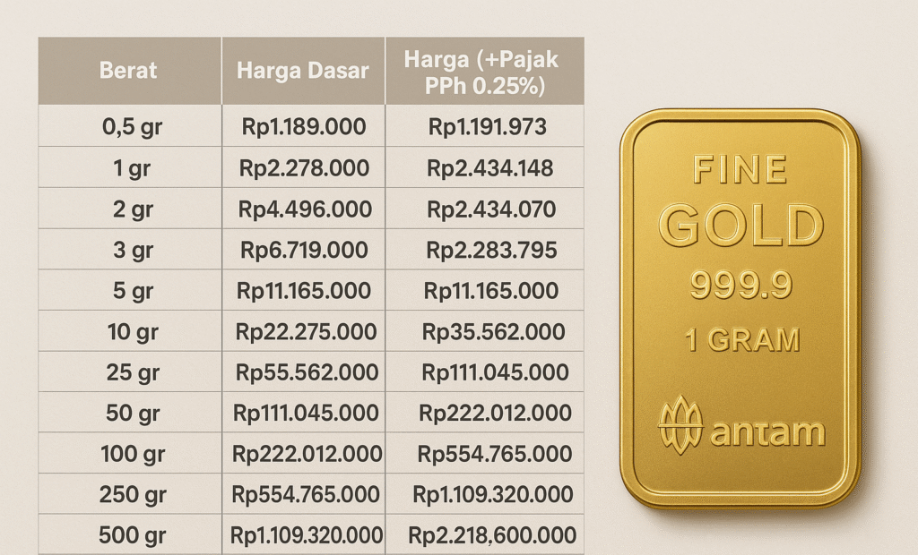 Harga Emas Antam Turun, Emas 1 Gram Dijual Rp2.278.000
