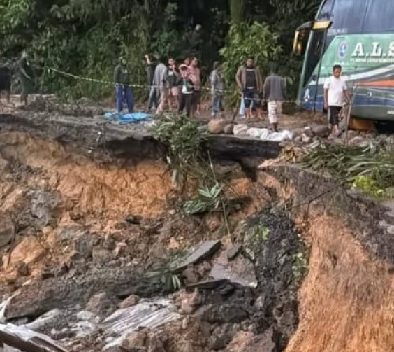Ruas Jalan Penghubung Aek Latong-Batu Jomba di Sipirok Kabupaten Tapanuli Selatan, Amblas Sepanjang 20 Meter